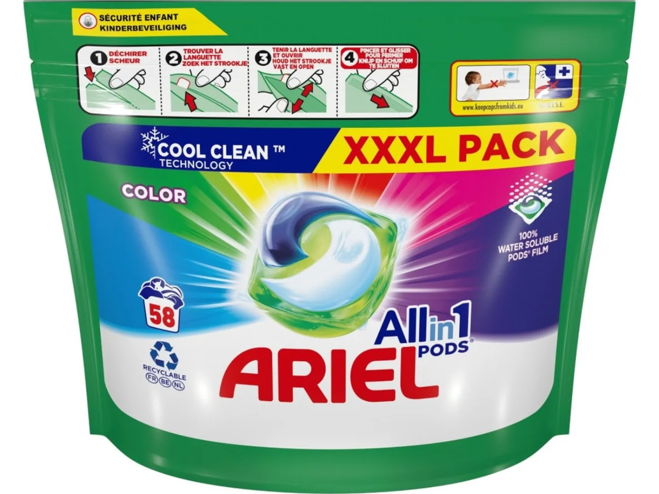 Pojedyncza mała kapsułka do prania mieści trzy pełne mocy komory, które razem sprawiają, że Twoje ubrania stają się czyste, świeże i pachnące.